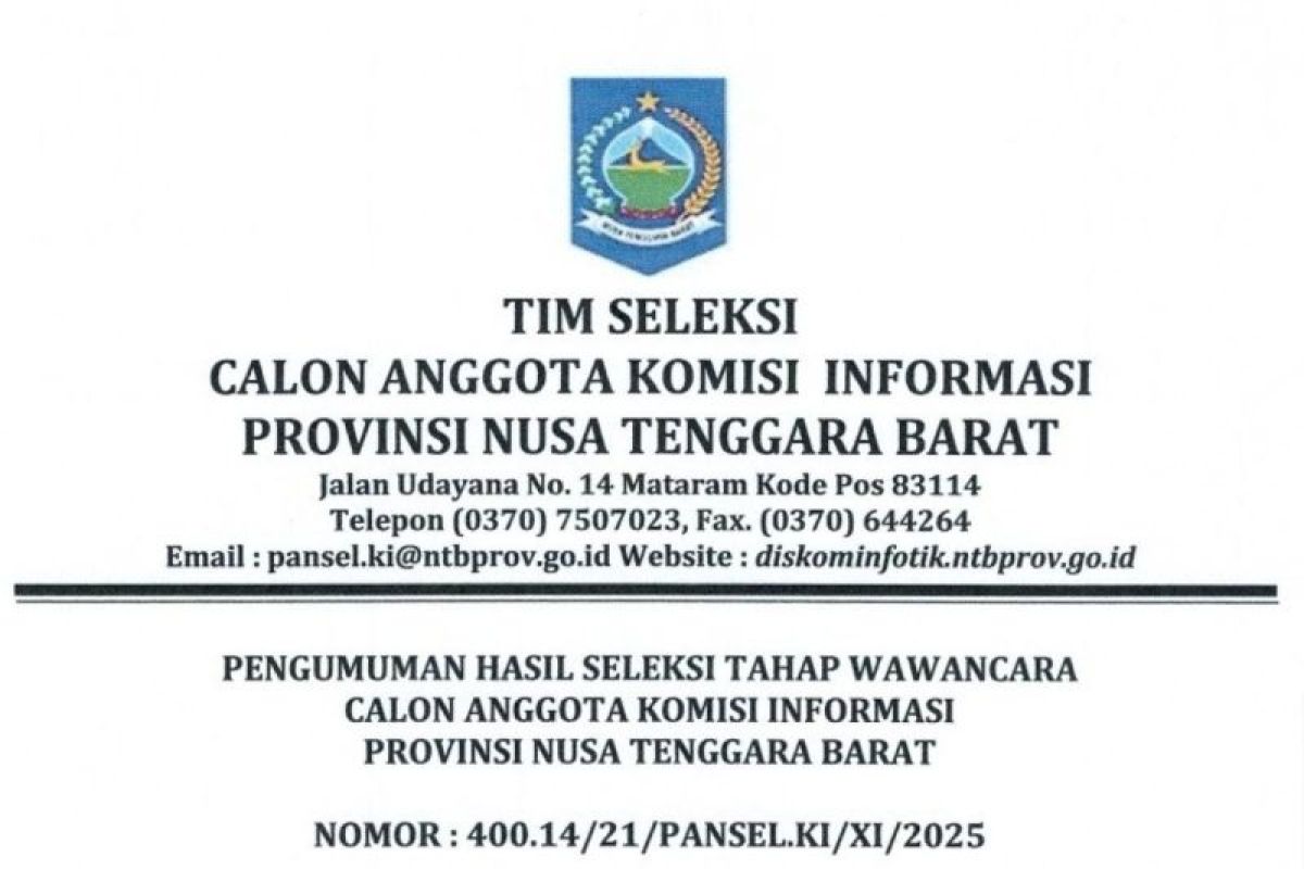 Baca juga: Pengumuman hasil tes potensi calon anggota Komisi Informasi NTB 2025--2029