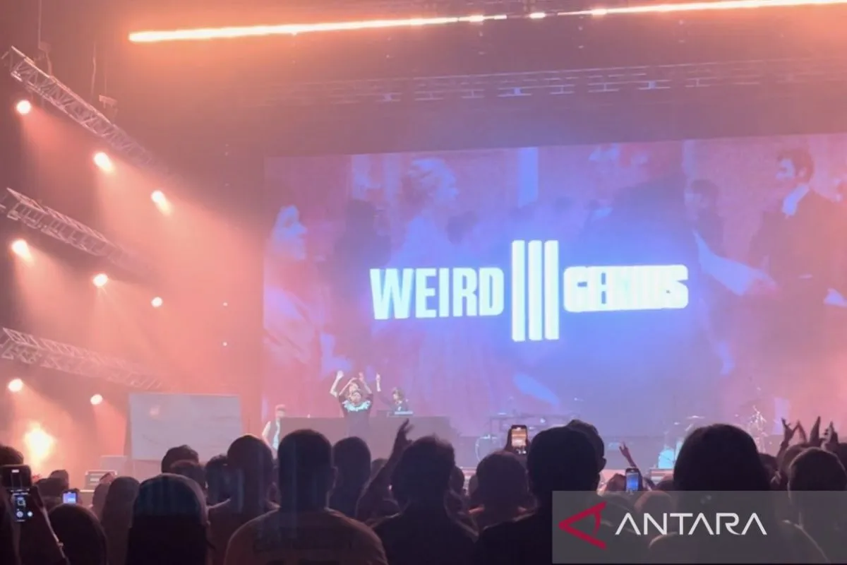 Jakarta (ANTARA) - Grup musik Weird Genius dan PORIS meramaikan konser rapper Rich Brian bertajuk “Where Is My Head?” yang berlangsung di Beach City International Stadium, Ancol, Jakarta Utara, Sabtu (29/11) malam.
