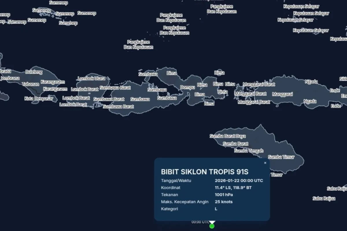 "Sirkulasi siklonik terpantau berada di selatan Nusa Tenggara Barat telah berkembang menjadi Bibit Siklon Tropis 91S," ujarnya di Mataram, Kamis.