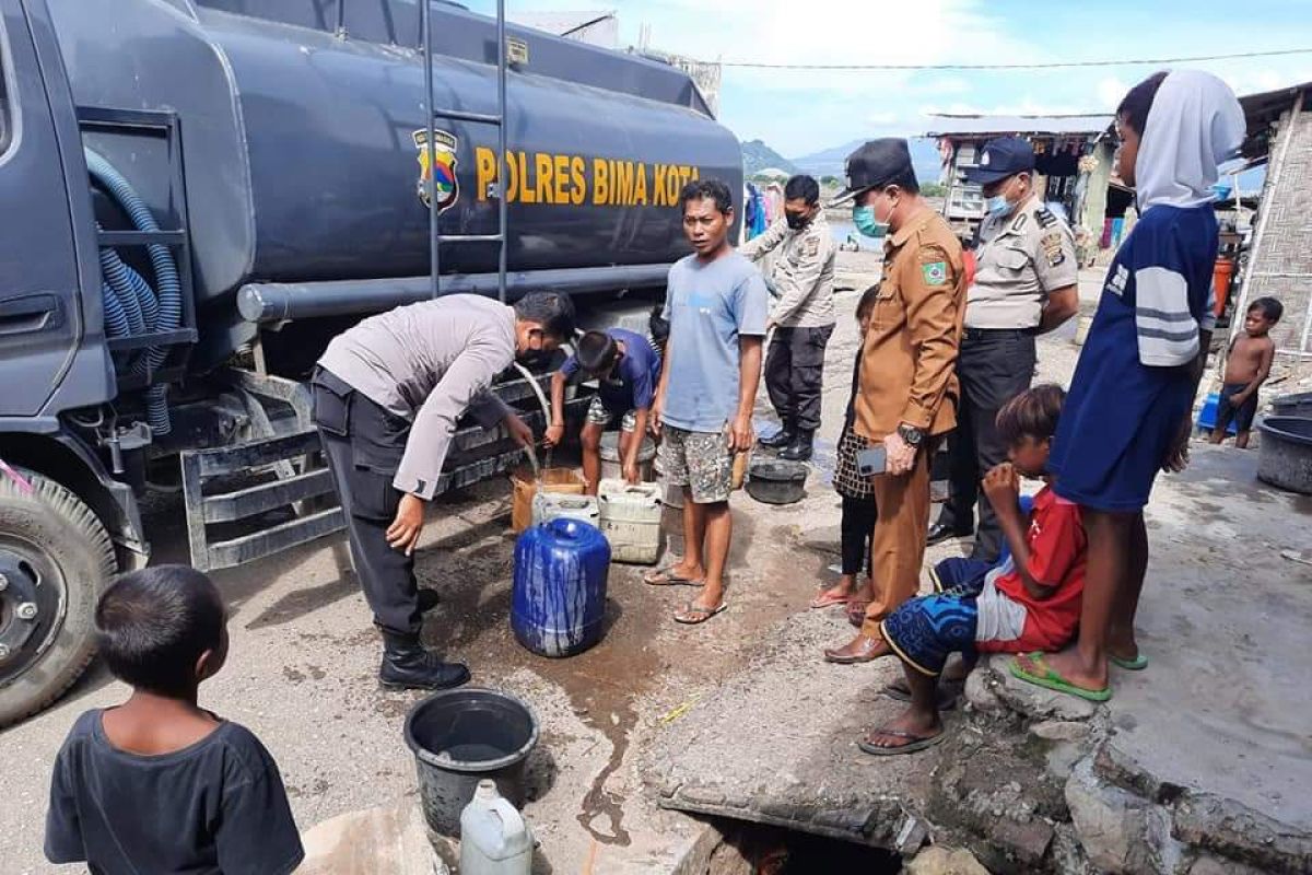 Bima Kota (ANTARA) - Sepekan aliran air dari PDAM tidak mengalir di RT 09 RW 04 Kelurahan Melayu, Polres Bima Kota turun tangan dan membagikan air bersih ke warga, Rabu (17/03) sekitar pukul 09.30 Wita.