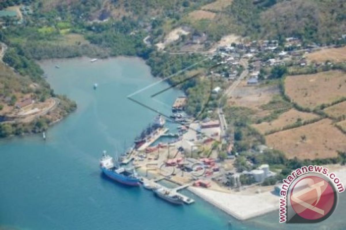 Foto udara kawasan pelabuhan Badas di Sumbawa Besar, Kabupaten Sumbawa, NTB, Rabu (8/7). PT Pelabuhan Indonesia III sejak awal 2013 resmi menjadikan pelabuhan Badas menjadi pelabuhan peti kemas yang potensial untuk berkembang dan menjadi penyokong pertumbuhan ekonomi di Pulau Sumbawa dan sekitarnya. ANTARA FOTO/Ahmad Subaidi/ed/pd/15.