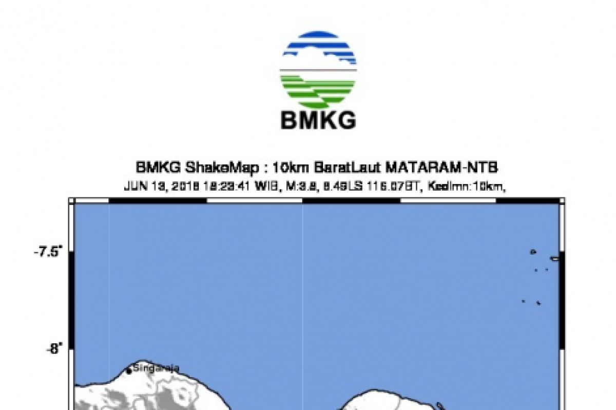 "Tepatnya pada jarak sekitar 10 kilometer arah barat laut Mataram, Ibu Kota NTB dengan kedalaman 10 km," kata Kepala Stasiun Geofisika Mataram Agus Riyanto.