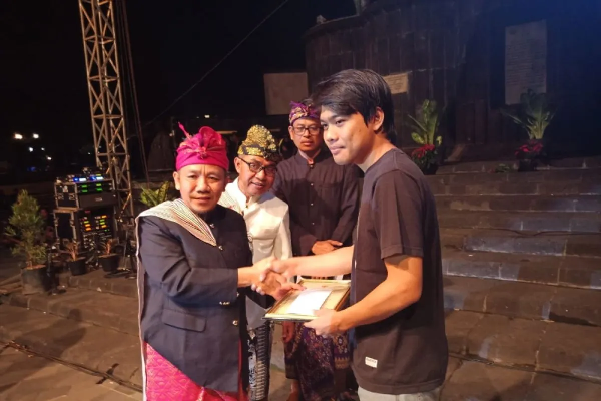 Bupati Lombok Utara H Najmul Ahyar (kiri), menyerahkan piagam penghargaan kepada relawan Mahasiswa Pecinta Alam Universitas Islam Indonesia Yogyakarta yang telah membantu penanggulangan bencana di Kabupaten Lombok Utara. (Foto Antaranews NTB/Humas KLU)