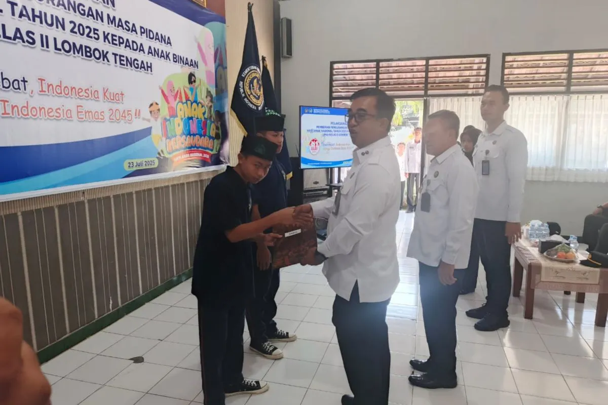 "Hari ini kami menyerahkan SK Menteri Imigrasi dan Pemasyarakatan tentang Pengurangan Masa Pidana dalam rangka Hari Anak Nasional Tahun 2025 kepada anak yang berhadapan dengan hukum yang menjalani masa nyantri di LPKA Kelas II Lombok Tengah," katanya.