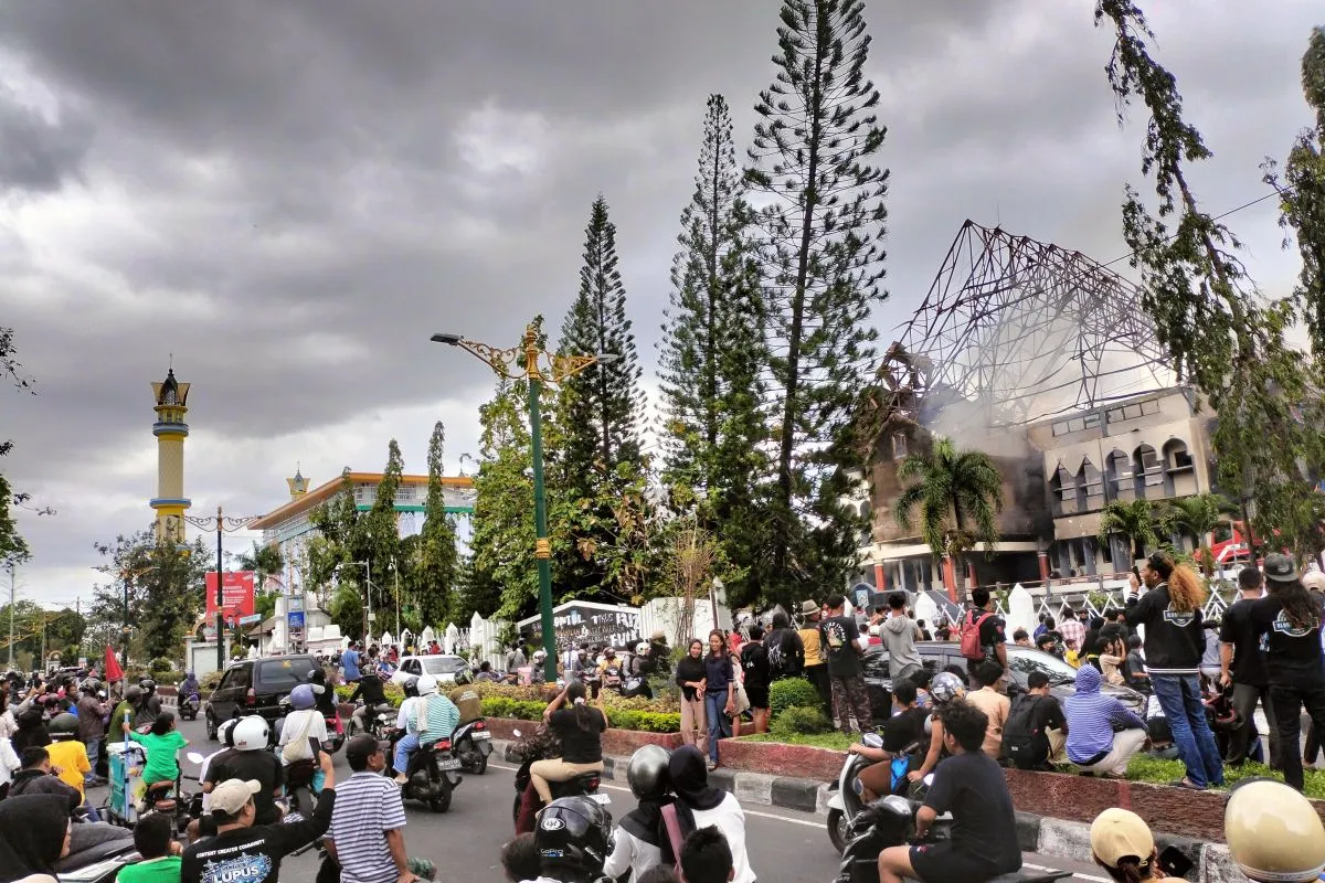 Mataram (ANTARA) - Ribuan warga memadati kawasan Jalan Udaya, Kota Mataram, Nusa Tenggara Barat, menyaksikan sisa kebakaran yang menghanguskan kantor DPRD NTB saat aksi unjuk rasa pada 30 Agustus 2025.