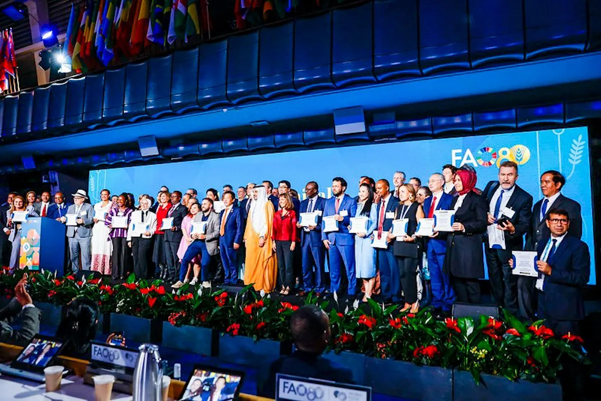 Dari 18 penerima, kata dia, hanya lima perwakilan negara (Arab Saudi, Brasil, China, Uganda, dan Maroko) yang dipanggil ke podium untuk menerima penghargaan langsung. Indonesia bersama penerima lainnya disampaikan melalui penayangan di layar utama dan penyampaian sertifikat digital oleh FAO.