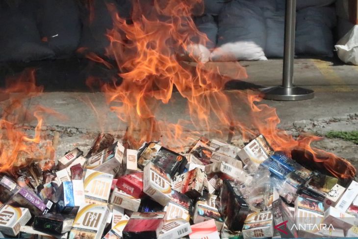 Api melahap rokok ilegal berbagai jenis dan merek saat kegiatan pemusnahan