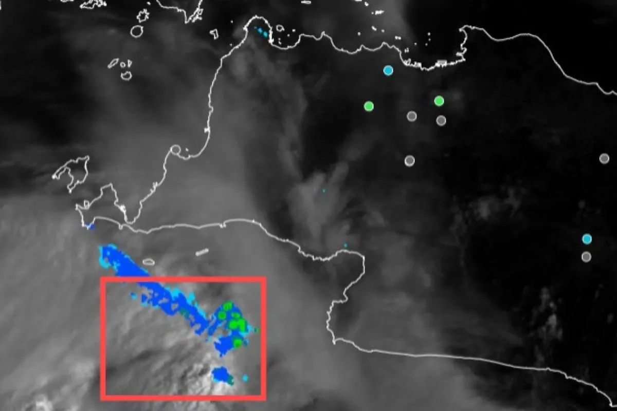 Selain itu, di perairan selatan Sukabumi, terpantau pula awan cumulus dan stratocumulus dengan puncak awan lebih dari 14.000 kaki, serta adanya perlambatan kecepatan angin di sepanjang area Samudra Hindia.