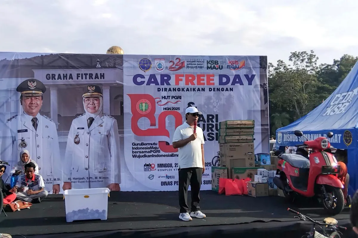 "Jangan tinggalkan pengabdian, karena di tangan para gurulah masa depan generasi penerus Sumbawa Barat kami titipkan," kata dia saat menghadiri kegiatan Car Free Day dirangkaikan dengan peringatan Hari Ulang Tahun Persatuan Guru Republik Indonesia (PGRI) dan Hari Guru Nasional (HGN) 2025 di Sumbawa Barat, Provinsi Nusa Tenggara Barat (NTB), Minggu.