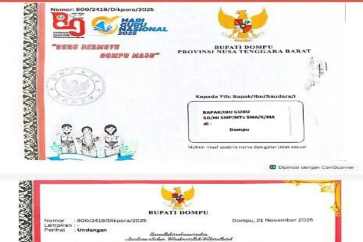 Upacara itu memiliki dua undangan, satu ditanda tangan oleh Bupati Dompu, Bambang Firdaus, pada Minggu siang dan satunya tanda tangan Ketua beserta Sekretaris PGRI Dompu yang tersebar sejak Minggu kemarin. Undangan tersebut ditunjukkan kepada seluruh jenjang pendidikan SD/MI, SMP/MTs, SMA/K, MA. Rencananya, upacara tersebut akan dipimpin oleh Wakil Bupati Dompu, Syirajuddin.