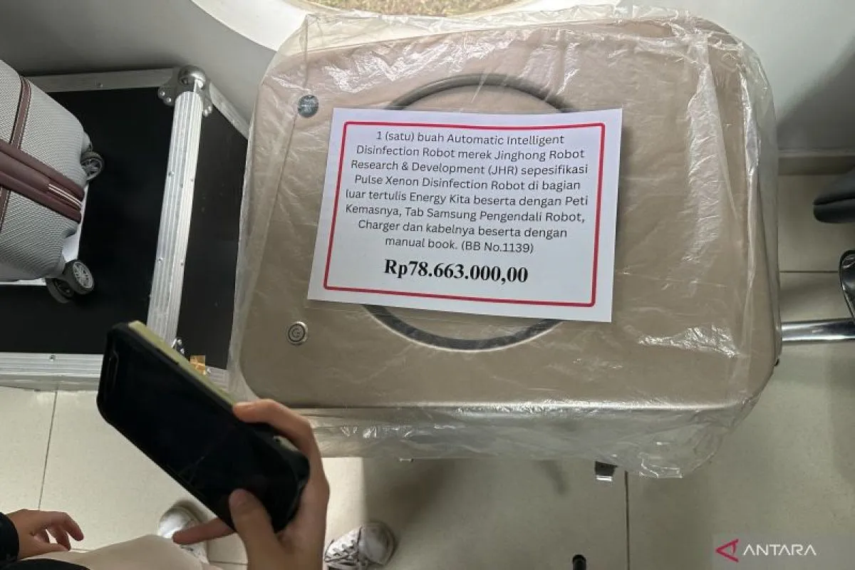 Sementara satu unit robot disinfektan merupakan automatic intelligent disinfection robot merek Jinghong Robot Research and Development (JHR) dengan spesifikasi pulse xenon disinfection robot dan di bagian luar tertulis Energy Kita beserta dengan peti kemasnya, Tab Samsung pengendali robot, pengisi daya dan kabelnya beserta dengan buku pedoman.