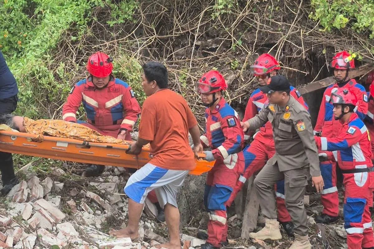 Saat petugas tiba di lokasi, lansia tersebut tidak tertimpa reruntuhan sebab lokasi reruntuhan juga cukup jauh dari lokasi lansia itu berada.