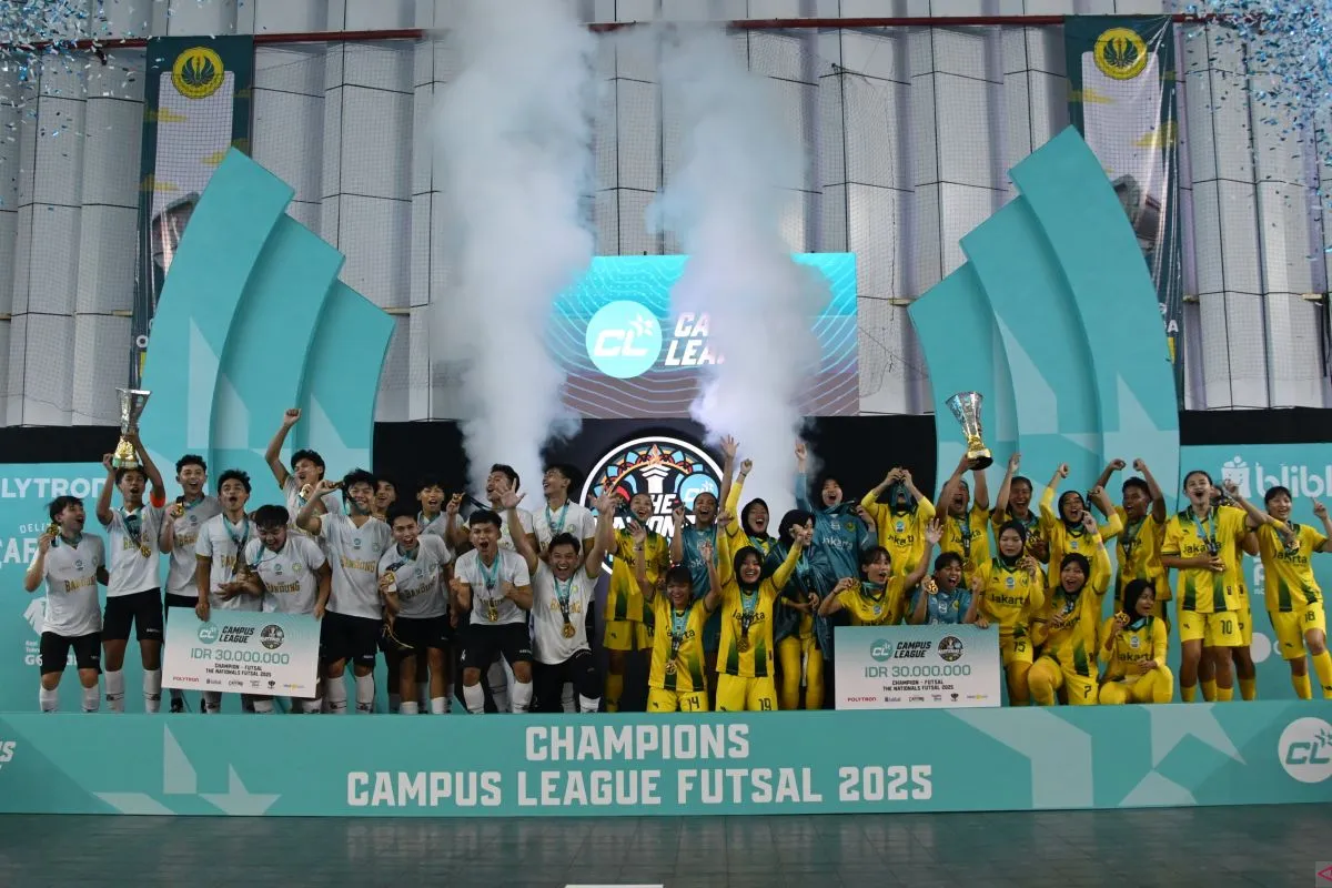 Jakarta (ANTARA) - Tim futsal putri Universitas Negeri Jakarta (UNJ) dan tim putra UIN Sunan Gunung Djati Bandung berhasil menjuarai Campus League Futsal 2025 setelah memenangkan partai final babak The Nationals di GOR UNJ, Jakarta, Minggu.