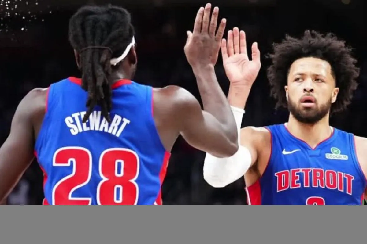 Pemain Detroit Pistons Cade Cunningham (kanan) bersama Isaiah Stewart merayakan kemenangan timnya atas New York Knicks 121-90 dalam laga di Detroit, Selasa (6/1/2026) WIB. (ANTARA/DetroitPistons)