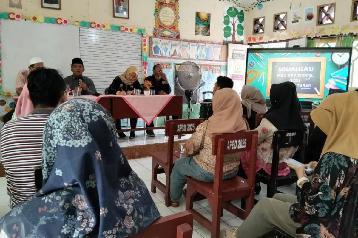 Rapat sosialisasi "full day school" di salah satu sekolah di Kota Mataram, Provinsi Nusa Tenggara Barat, Sabtu (10/1-2025). ANTARA/Nirkomala.