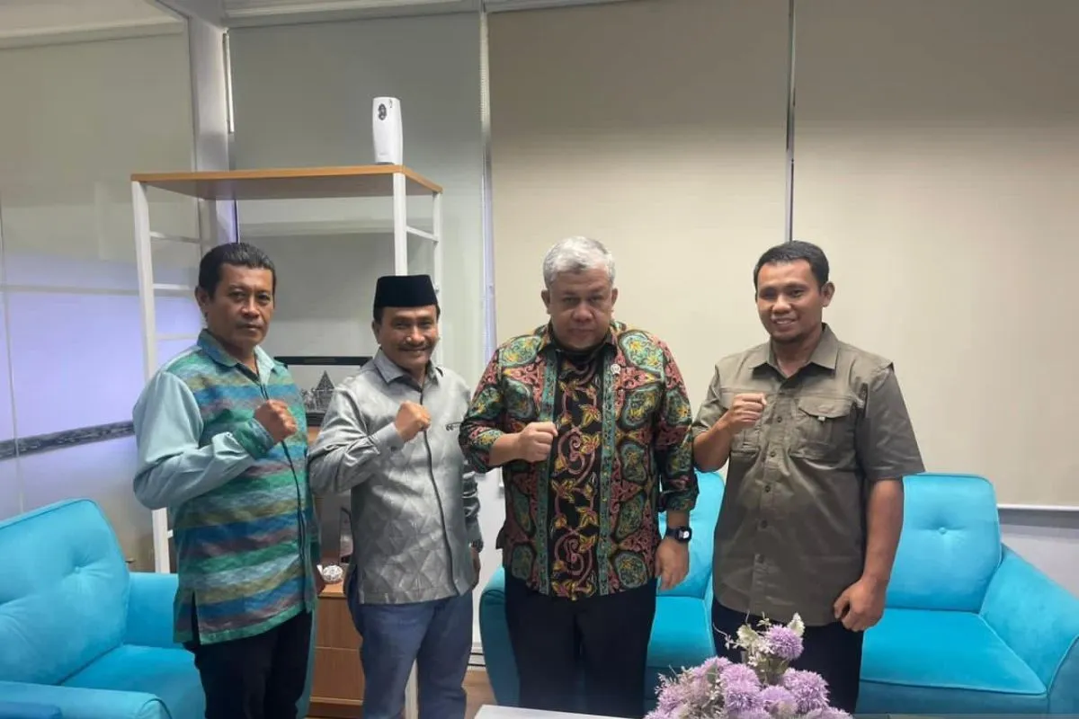 Wakil Bupati Dompu Syirajuddin (dua dari kiri) melakukan pertemuan dengan Wakil Menteri Perumahan dan Kawasan Permukiman RI Fahri Hamzah (dua dari kanan) di Kantor Kementerian PKP, Jakarta, Kamis (15/1/2026). ANTARA/Ho-Dok. Wakil Bupati Dompu