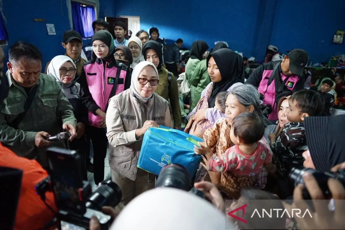 Menteri Pemberdayaan Perempuan dan Perlindungan Anak Arifah Fauzi menyerahkan bantuan spesifik perempuan dan anak kepada warga terdampak bencana di Dusun Pasirkuning, Desa Pasirlangu, Kecamatan Cisarua, Kabupaten Bandung Barat, Jawa Barat. ANTARA/HO-KemenPPPA