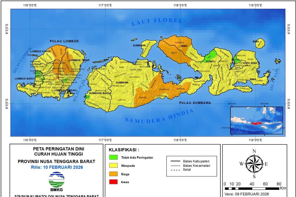 Aebelumnya BMKG mengingatkan masyarakat dan pemangku kebijakan di wilayah Nusa Tenggara Barat untuk mewaspadai potensi cuaca ekstrem pada 10-14 Februari 2026 mendatang.
