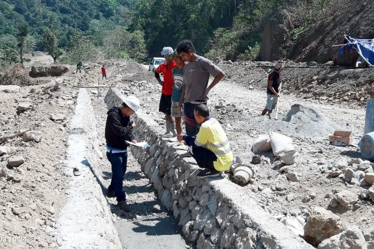 Perbaikan ruas jalan Tanjakan Naga di Desa Talonang, Kecamatan Sekongkang, menjadi salah satu program tanggung jawab sosial Amman Mineral di bidang infrastruktur pada 2019.