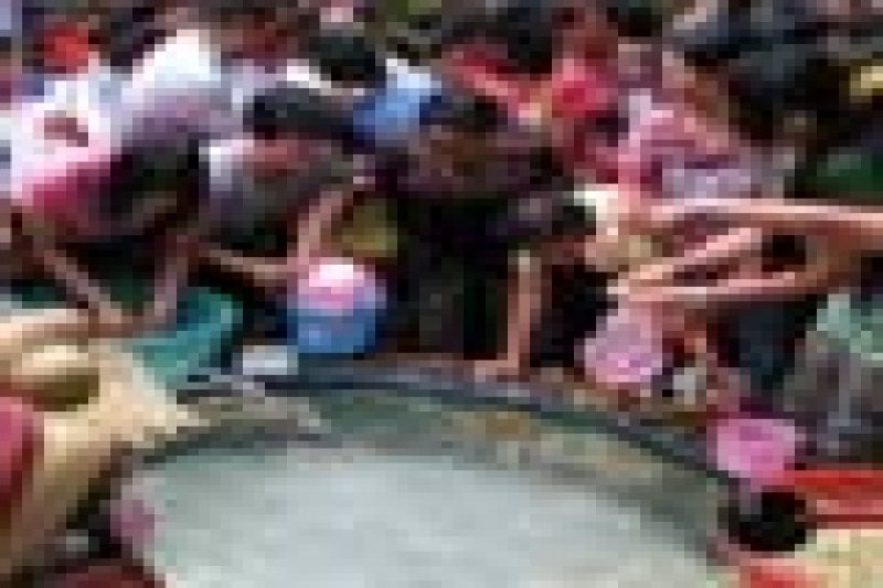 Sejumlah warga keturunan Tionghoa melakukan ritual mandi shio di Vihara Avalokitesvara, Sweta, Mataram, NTB, Minggu (8/2). Mandi shio dilakukan untuk menyeimbankan beberapa shio yang tidak memiliki keseimbangan dengan alam pada tahun ini.<b> (Foto:Budi Afandi/<br>ANTARAMataram.com/09),/b>