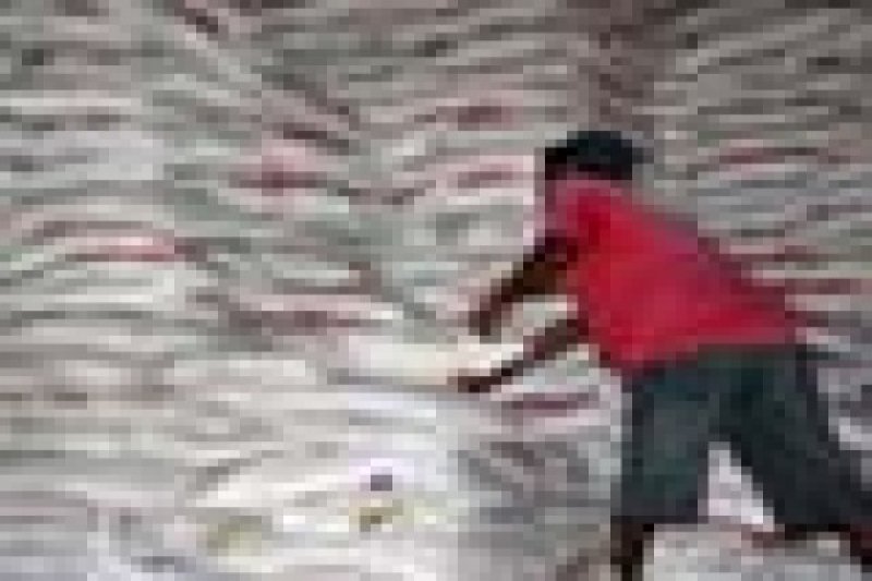 Seorang pekerja menata beras raskin yang akan segera didistribusikan di gudang Bulog Divre NTB Sweta, Mataram,NTB, Sabtu (28/2). Menurut data Bulog Divre NTB pagu raskin 2009 untuk provinsi NTB sebanyak 105.582.780 kg yang akan disalurkan untuk 586.571 Rumah Tangga Sasaran (RTS) yang ada di 2 kota dan 7 kabupaten di wilayah NTB.(Foto:Ahmad Subaidi/ ANTARAMataram.com/09)