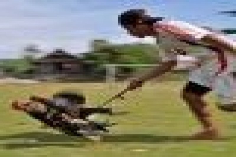 Seorang joki berusaha mengendalikan ayam miliknya saat mengikuti "Barapan ayam" (karapan ayam) di Desa Dasan Anyar, Kecamatan Jereweh, Taliwang, Kabupaten Sumbawa Barat, NTB, Minggu (27/6). Barapan ayam yang diselenggarakan setiap minggu itu diikuti oleh peserta dari desa dan kelurahan se-Kabupaten Sumbawa Barat dan diadakan berpindah-pindah dari desa satu ke desa lainnya, selain untuk melestarikan budaya sekaligus sebagai ajang silaturrahmi serta mempererat tali persaudaraan antar desa.<b>(FOTO ANTARA/Ahmad Subaidi/ss/hp/10)<b>