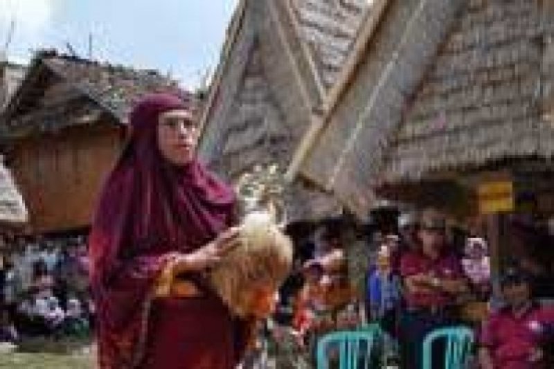 Seorang perempuan membawa padi hasil panen untuk disimpan di "Uma Lengge" (rumah lumbung khas Bima) saat prosesi acara "Hanta Fare" di Desa Maria, Kecamatan Wawo, Kabupaten Bima, NTB, Minggu (5/12). Tradisi Hanta Fare adalah sebuah tradisi masyarakat di Bima mengantarkan hasil panen untuk disimpan di Uma Lengge.<b>FOTO ANTARA/Ahmad Subaidi/pd/10<b>