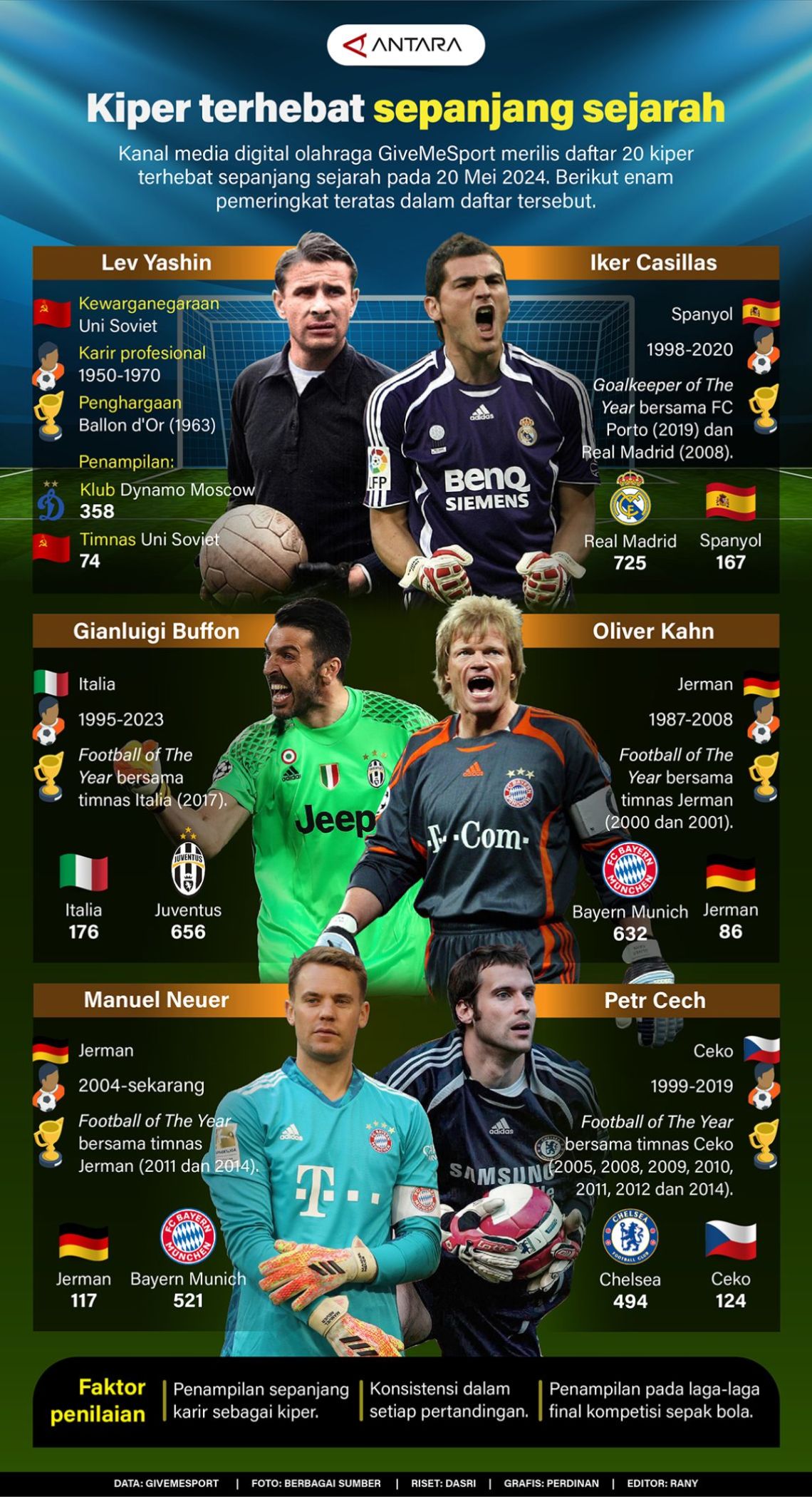 Kiper terhebat sepanjang sejarah Jumat, 31 Mei 2024 9:29 Kanal media digital olahraga GiveMeSport merilis daftar 20 kiper terhebat sepanjang sejarah pada 20 Mei 2024. Berikut enam pemeringkat teratas dalam daftar tersebut. COPYRIGHT © ANTARA Mataram 2026 facebook Twitter Whatsapp pinterest