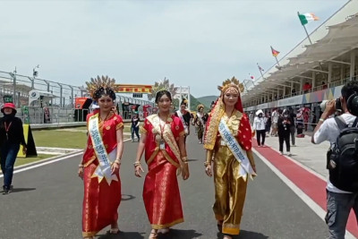 ANTARA - Sejumlah gadis dengan pakaian adat khas NTB di pit line, menyita perhatian seluruh official dan pembalap digarasi paddock. Bergaya bak model, para gadis dengan atribut budaya ini bahkan mendampingi para pemenang balap WSBK 2022 Mandalika naik ke podium. Pihak Dorna Sport meminta agar gelaran serupa lebih diperbanyak lagi pada gelaran tahun depan. (Kusnandar/Denno Ramdha Asmara/Afut Syafril Nursyirwan)