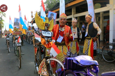 ANTARA - Menteri Koordinator bidang Infrastruktur dan Pembangunan Kewilayahan Agus Harimurti Yudhoyono melepas parade induk olahraga Komunitas Sepeda Tua Indonesia (KOSTI) pada Festival Olahraga Masyarakat Indonesia (FORNAS) ke VIII yang digelar di Provinsi Nusa Tenggara Barat, Minggu (27/7). Menko AHY mengatakan pesta olahraga dua tahunan ini untuk membangun karakter budaya masyarakat yang disematkan melalui kegiatan yang menyehatkan. (Kusnandar/Agha Yuninda Maulana/Feny Aprianti)